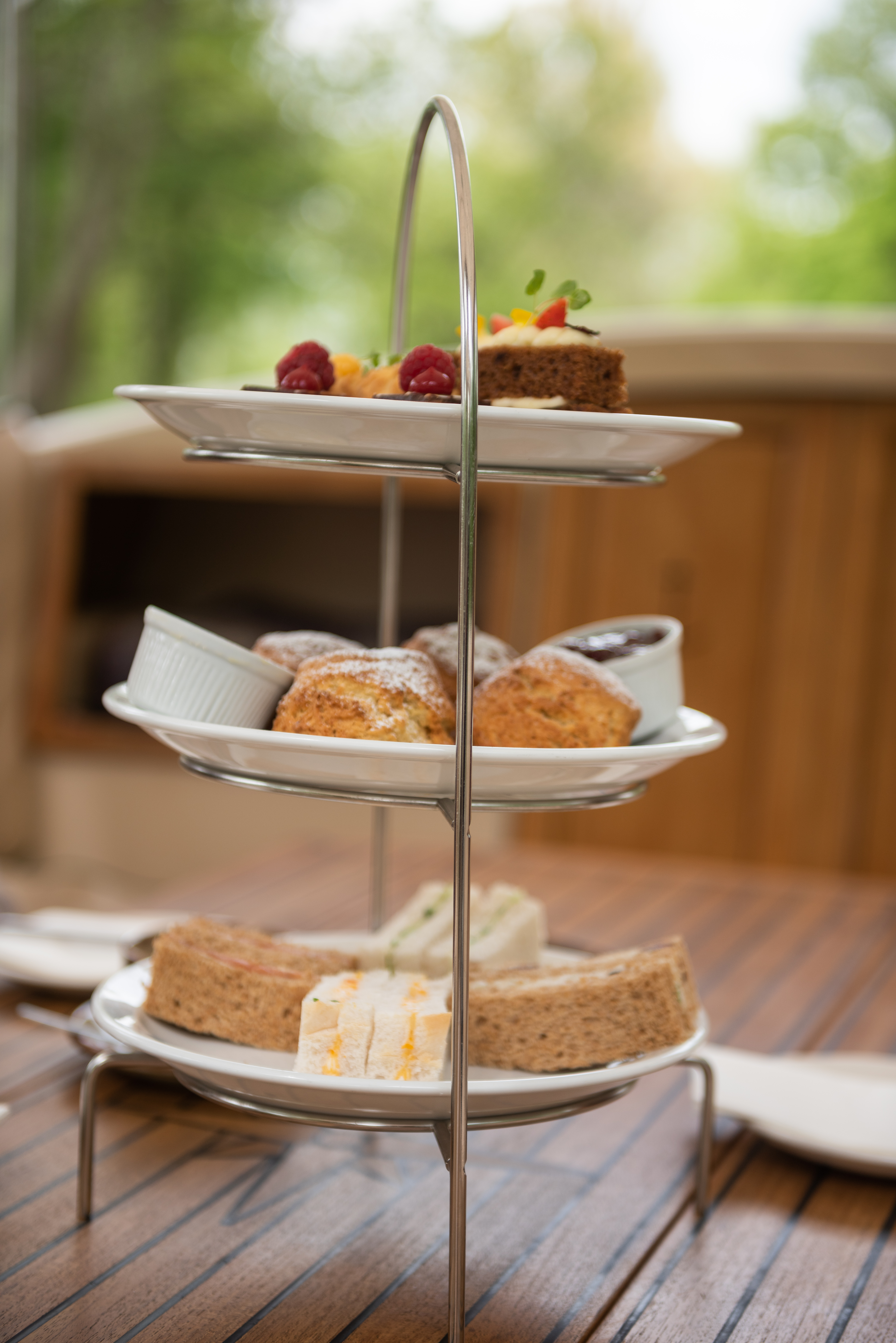 Aboard the boat, we serve an indulgent afternoon tea provided by the renowned riverside restaurant, The Folly. The traditional menu includes*.